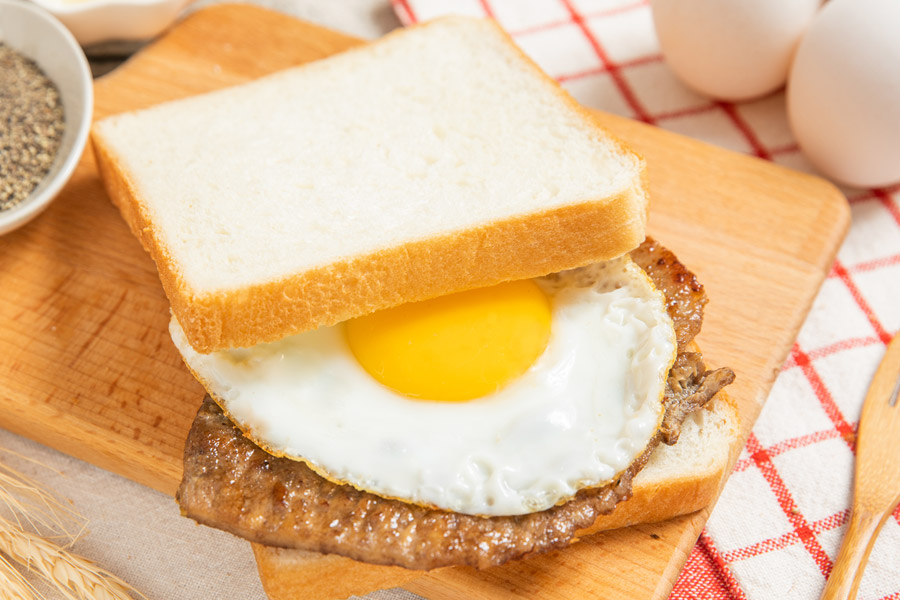 ▲彈牙有嚼勁的里肌肉排,醃製獨特的祕方,搭配一顆優質雞蛋,夾入Q彈口感的晨光吐司,滿滿的幸福口感。